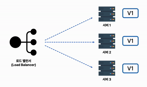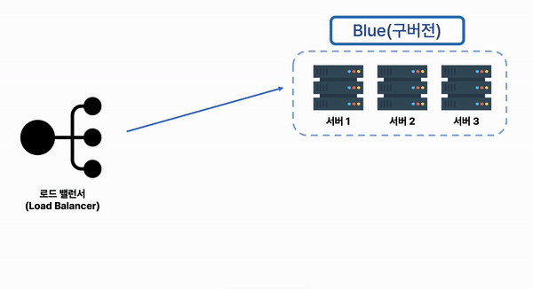 기존 구버전 서버 운영 중에 신버전 서버를 배포하고, 배포가 완료되면 해당 신버전 서버로 모든 트래픽을 향하게 하고