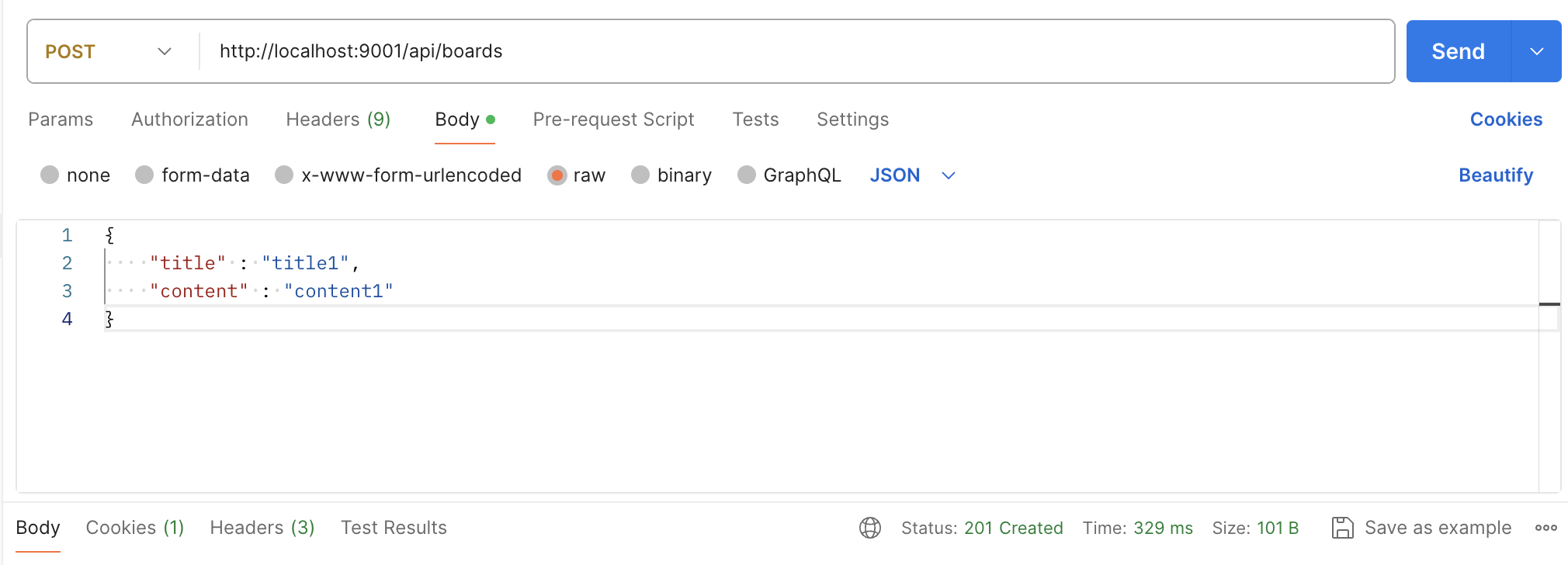 위와 같이 201 Created로 성공하는 것을 알 수 있습니다.