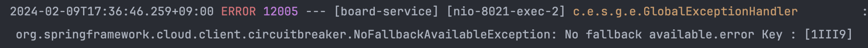 호출받는 Member-Service 서버를 실행하지 않고 Board-Service에 10번 요청을 보내도록 하겠습니다.