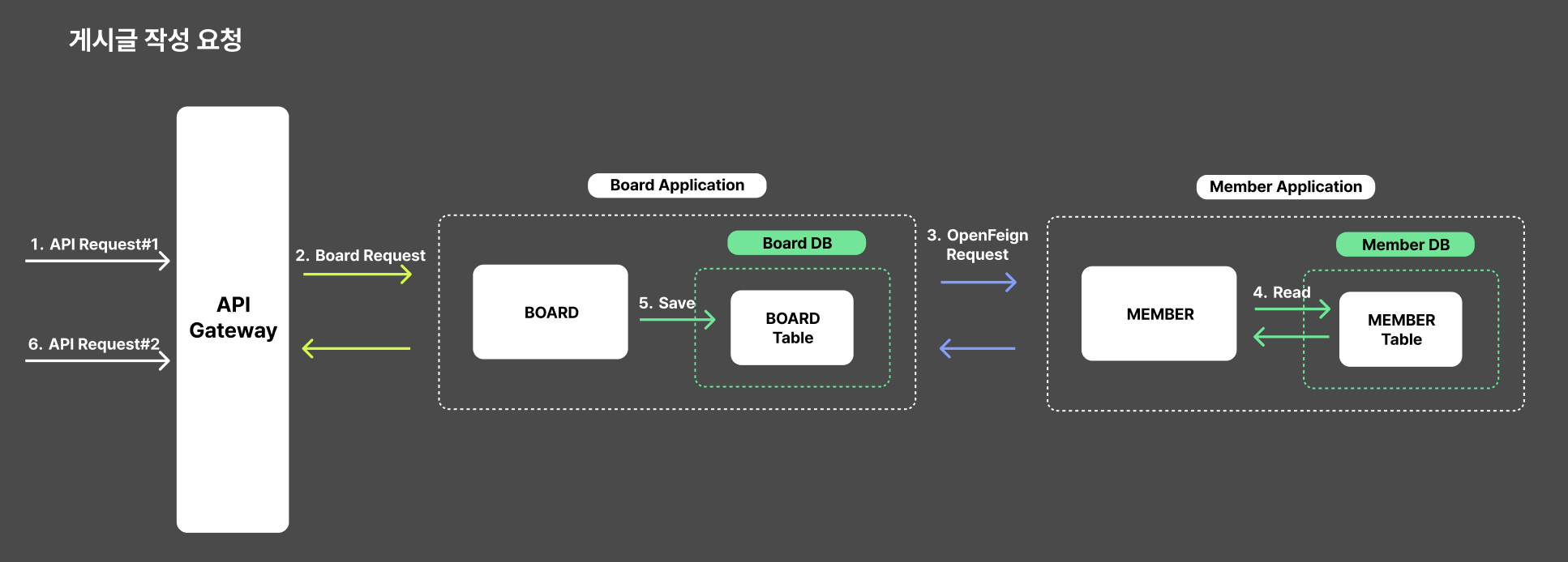 - Member-Service의 Member DB에서 멤버 정보를 Read해서 Board-Service에게 응답