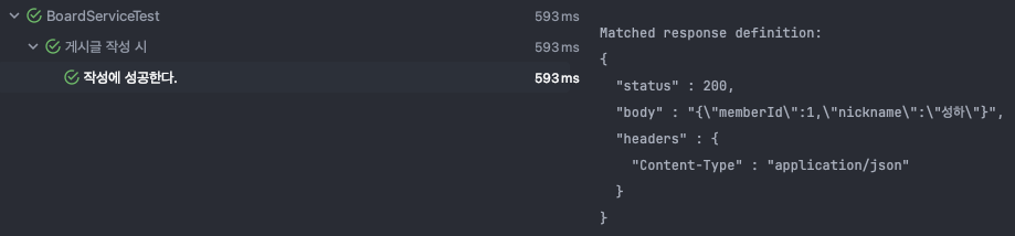 - expectedResponse : Stub할 Response를 구성하기 위해 ObjectMapper의 writeValueAsString과 Map을 사용했습니다.
