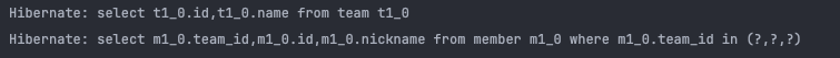 이전 예시에서 Member - Team에 Team 3개가 존재하여 3개의 추가 조회 쿼리가 발생했습니다.