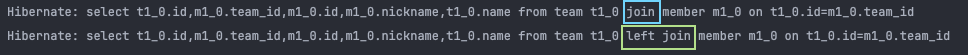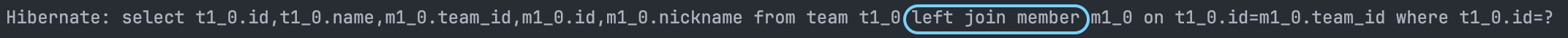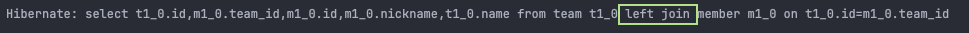 모두 Team 엔티티를 가져올 때 Member를 left join해서 가져오기 때문에 Member를 가져오는 추가 조회 쿼리가 발생하지 않습니다.