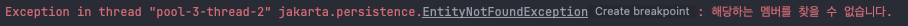 그래서 멀티 스레드 작업 트랜잭션에서 멤버를 찾을 수 없다고 예외가 발생한 것입니다.