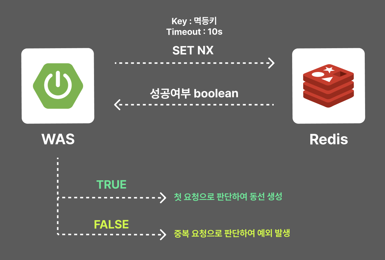 - Redis SET NX 결과가 true면 첫 요청이므로 이후의 비즈니스 로직인 동선 생성 진행