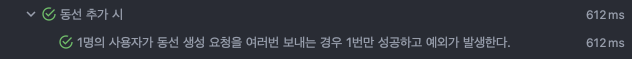 - 검증 : 총 10개의 중복 요청 중 1개의 요청만 성공하고, 나머지 9개의 요청은 실패해야한다.