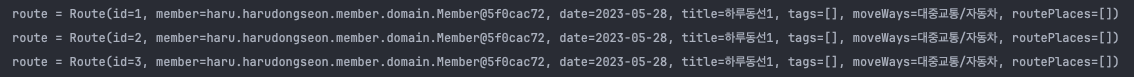 아래와 같이 필드가 같은 3개의 동선이 생성된 것을 확인할 수 있었습니다.