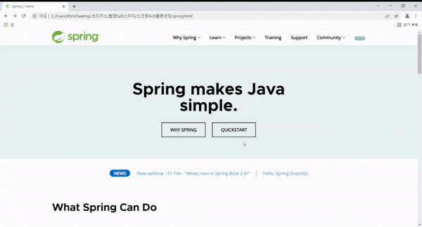 소름돋게도, 그 당시에는 뭐하는 기술인지도 모르는 Spring 프레임워크의 사이트를 화면만 클론코딩했었다!