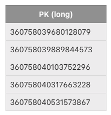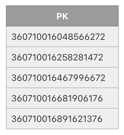 Snowflake ID로 PK를 생성하게 되면 다음과 같이 저장됩니다.