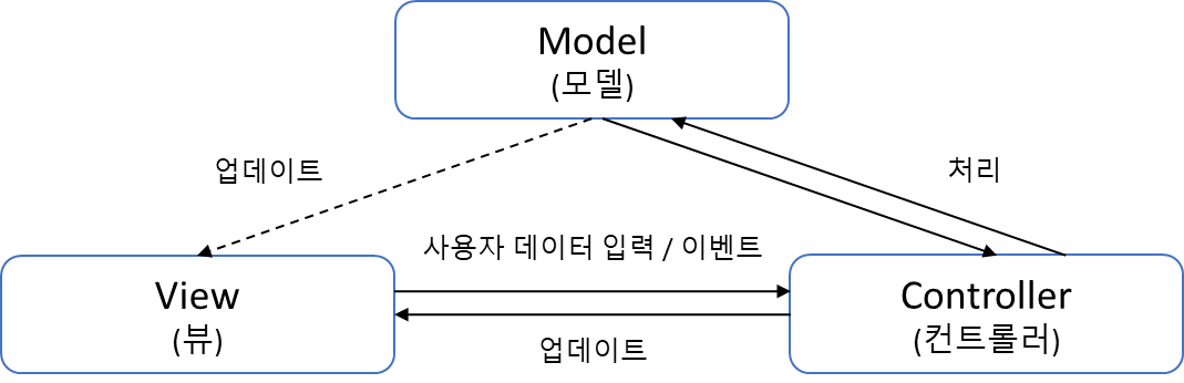 * Model → 서비스 → 컨트롤러 → View → 사용자