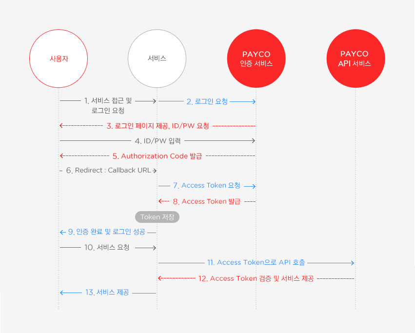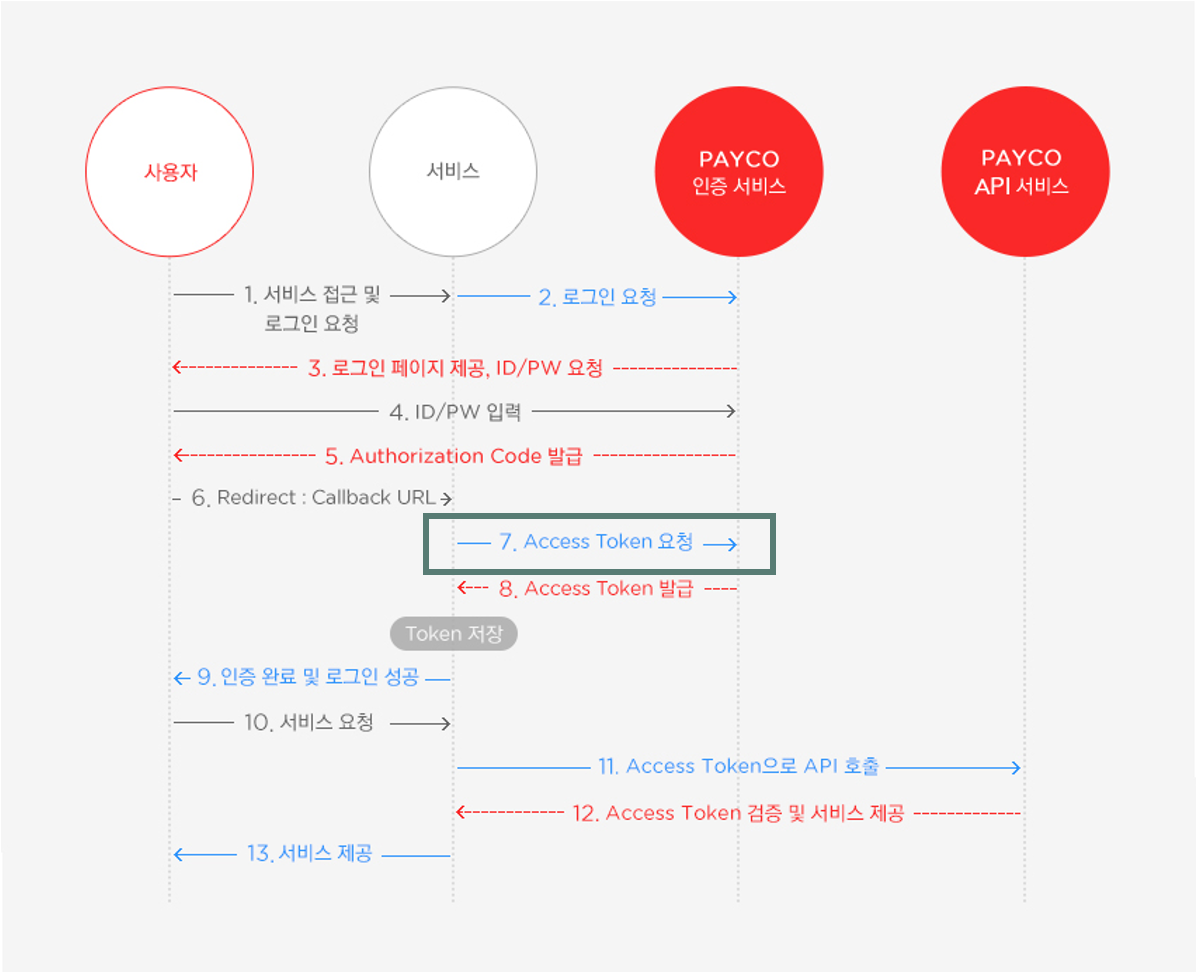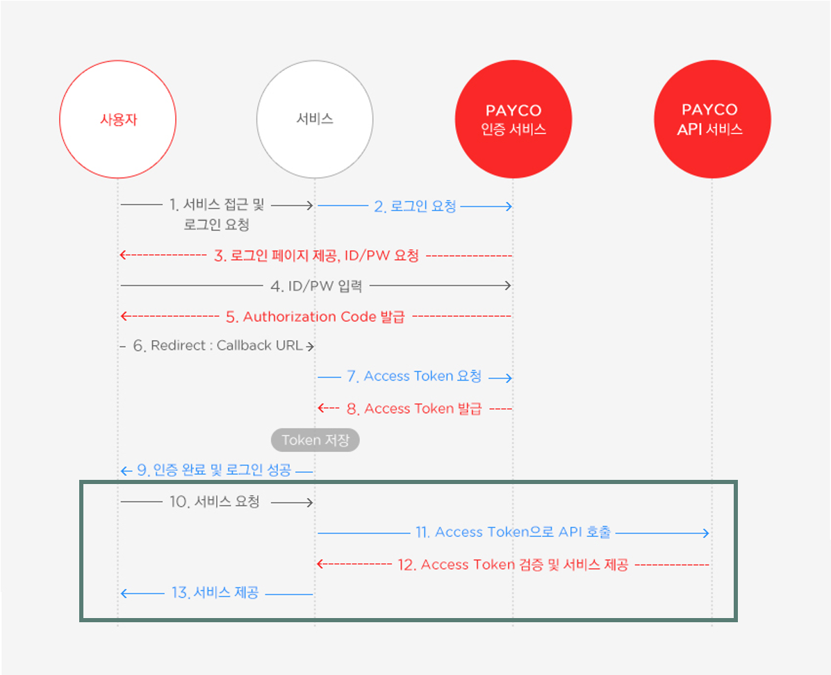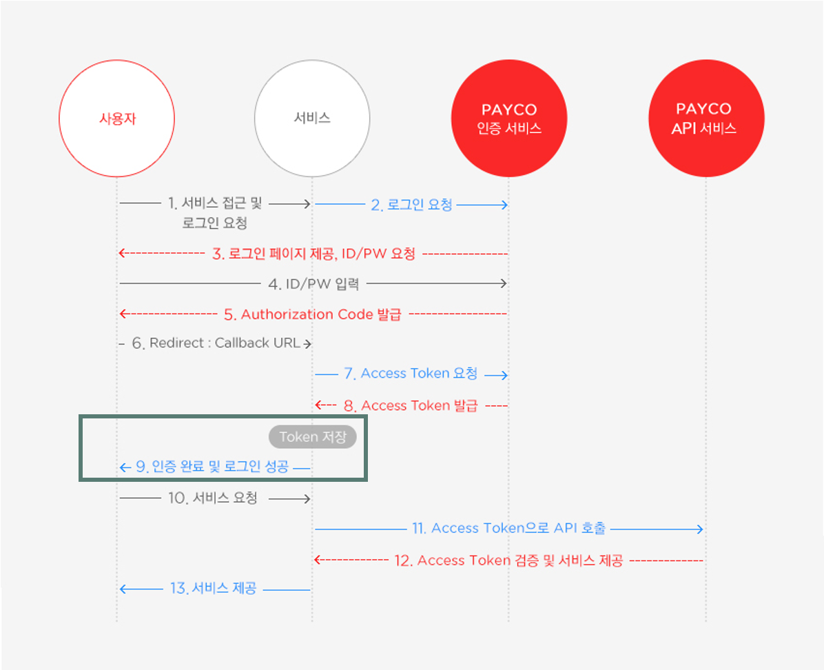 아래 이미지는 PAYCO의 OAuth 2.0 인증 과정입니다.