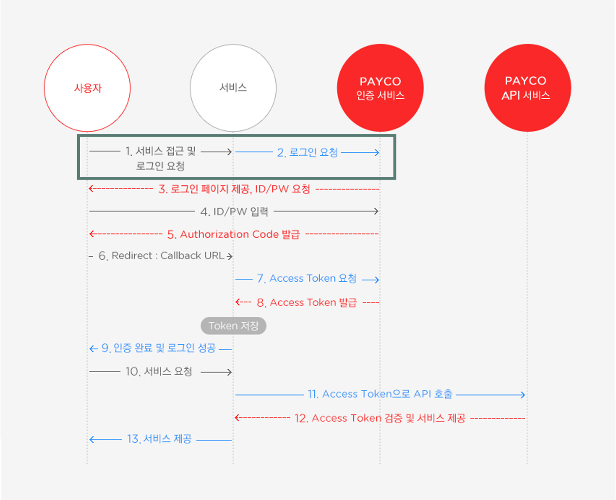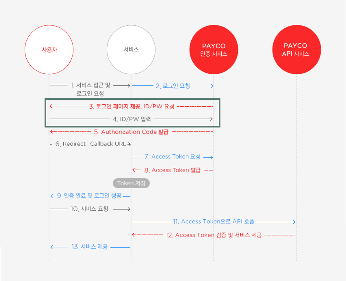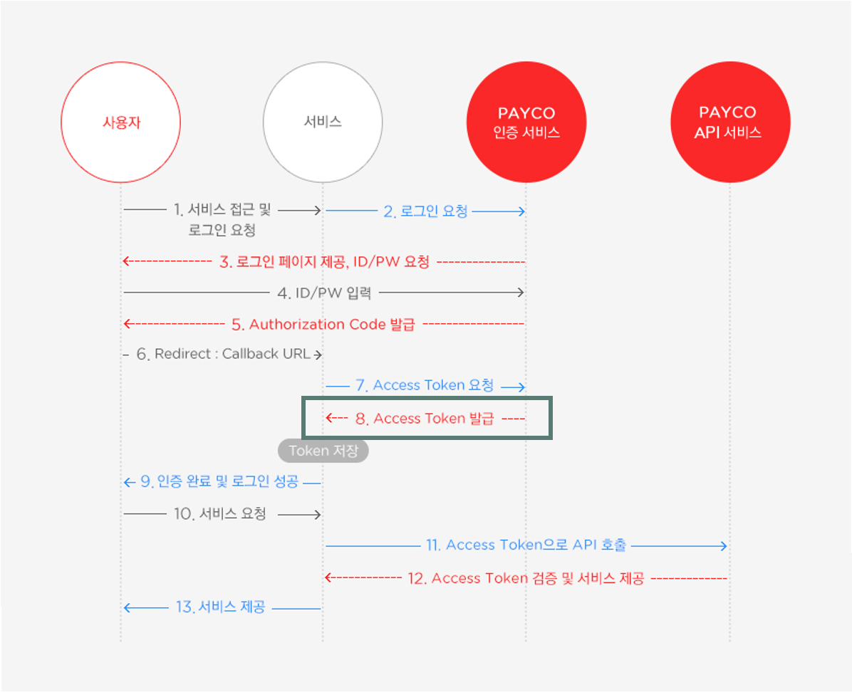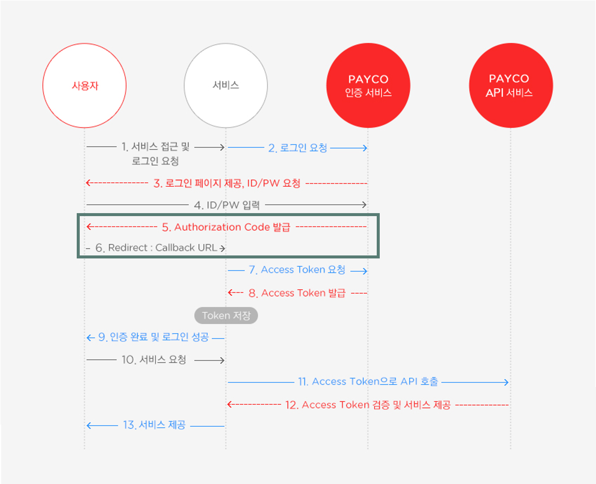아래 이미지는 PAYCO의 OAuth 2.0 인증 과정입니다.