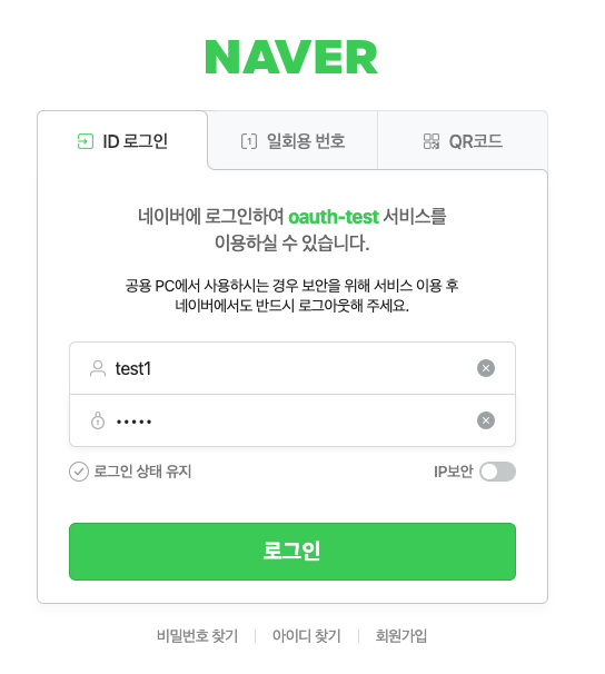 4-1. Resource Owner(사용자)가 Naver의 ID/PW를 입력하고, 로그인 버튼을 누른다.