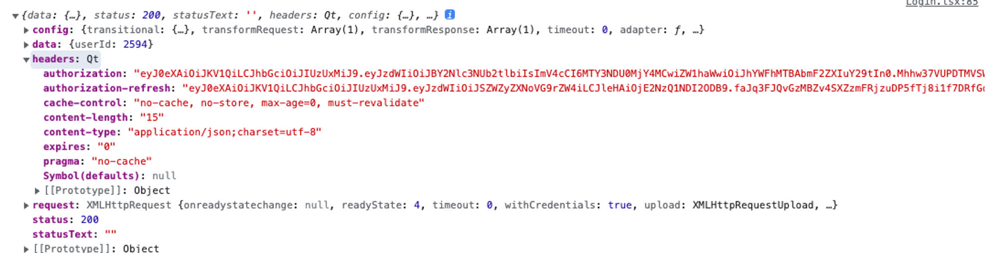 위의 코드를 설정하니, CORS 문제는 해결되었지만 로그인 시 응답 헤더에 토큰 관련 헤더가 들어오지 않았다.