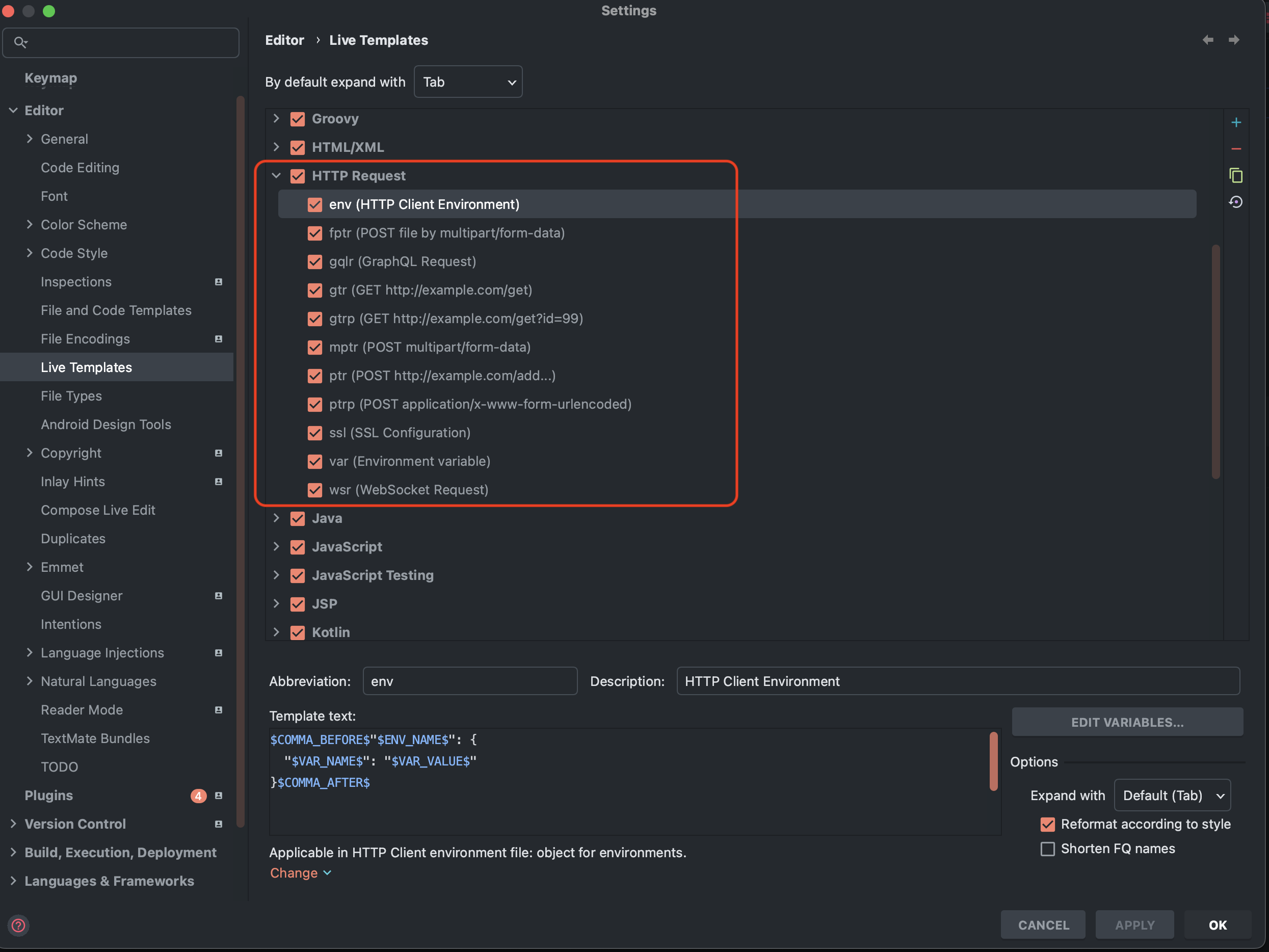 또한, 자주 사용하는 커스텀 Live Template을 지정할 수 있다!